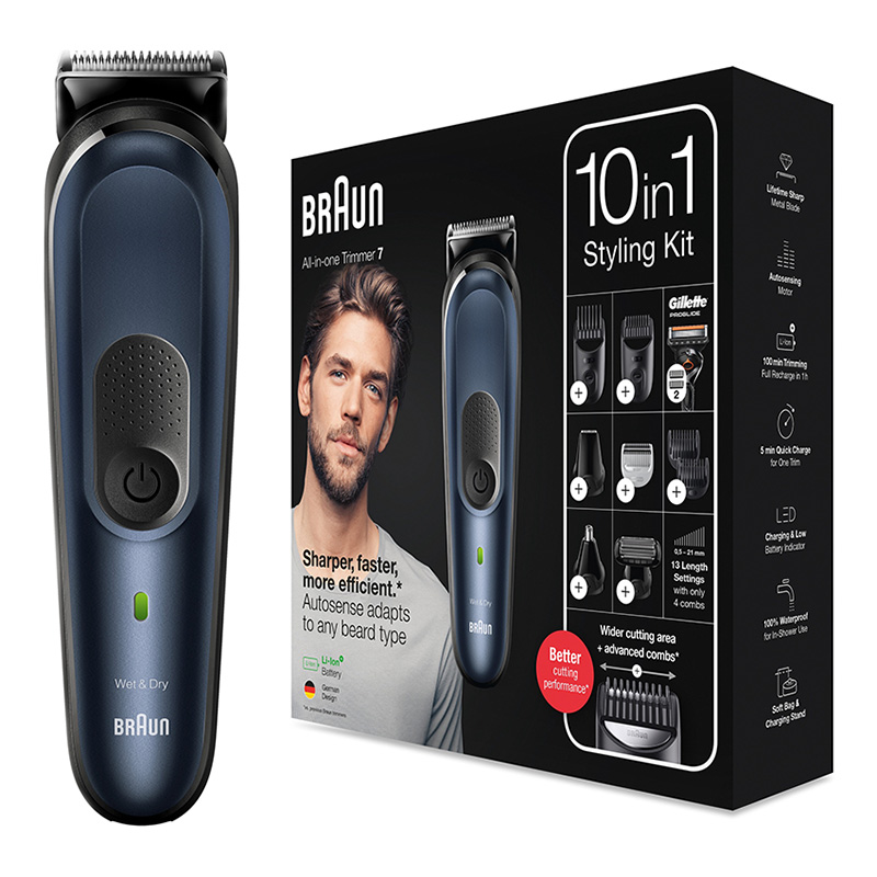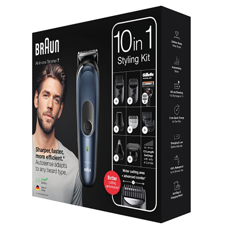- Мужской Триммер Braun 10-in-1 Trimmer MGK7330, Черный | Синий