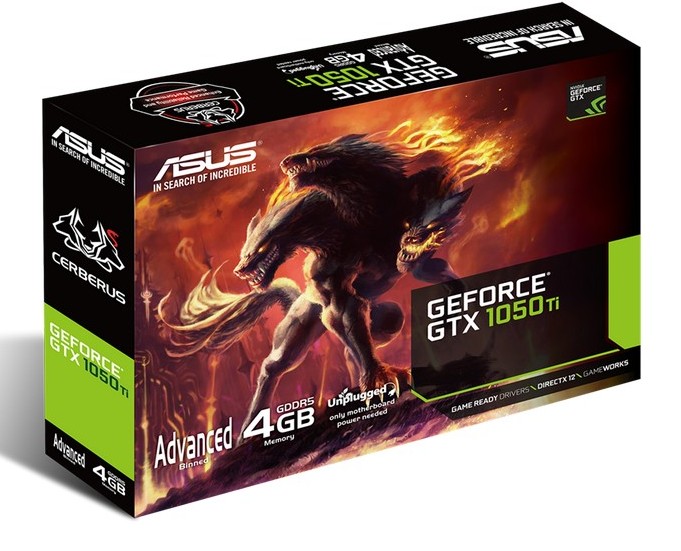 - Видеокарта ASUS CERBERUS-GTX1050TI-A4G, 4ГБ GDDR5 128бит