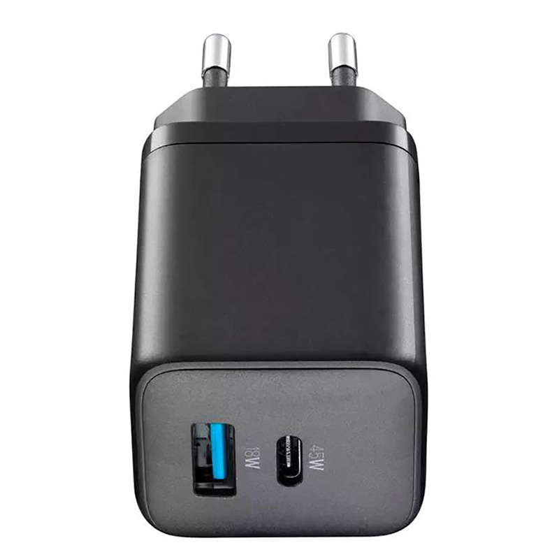 - Зарядное устройство Cellularline Wall Charger GAN, 2 Ports, 45W, 45Вт, Чёрный