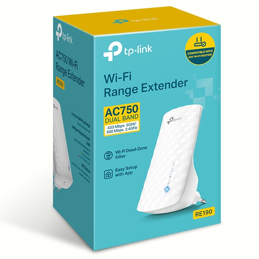 - Беспроводная точка доступа TP-LINK RE190, 300 Мбит/с, 433 Мбит/с, Белый