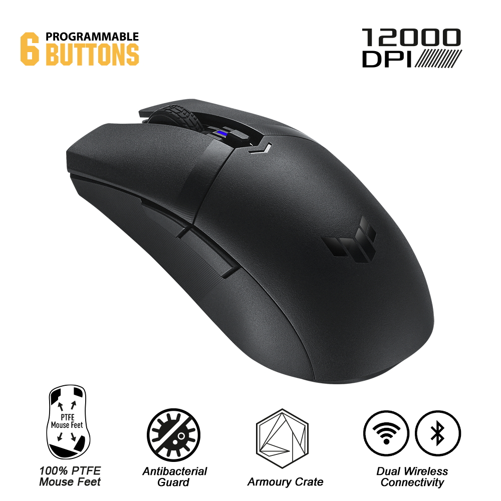 - Wireless Gaming Mouse Asus TUF GAMING M4, up to 12000 dpi, 6 buttons, 300IPS, 35G, 62g., 2.4GHz/BT