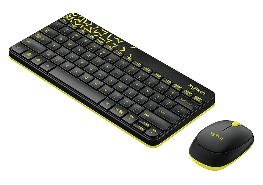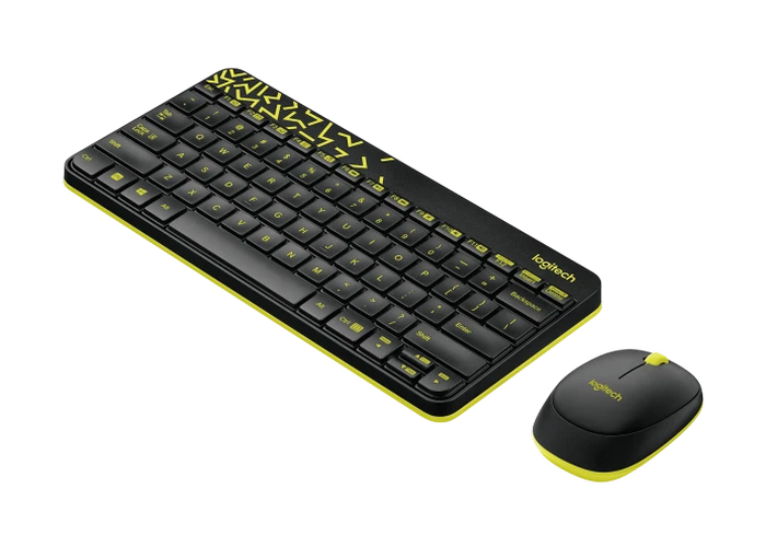 - Клавиатура и мышь Logitech MK240, Беспроводное, Чёрный/Жёлтый