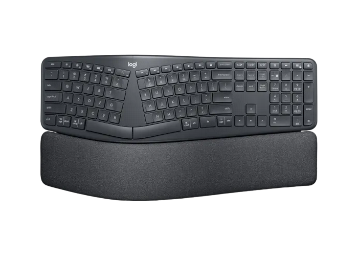 - Wireless Keyboard Logitech ERGO K860, Curved keyframe, Split layout, Wrist rest, Tilt legs, 2.4/BT